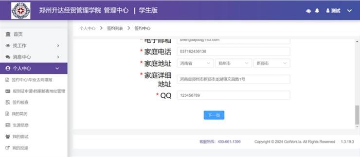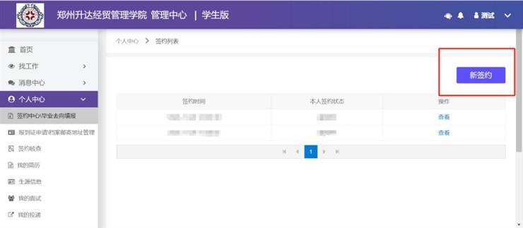 学生在后台点击【查看】已更新签约信息。确认无误点击【确认签约】提交至院系审核。