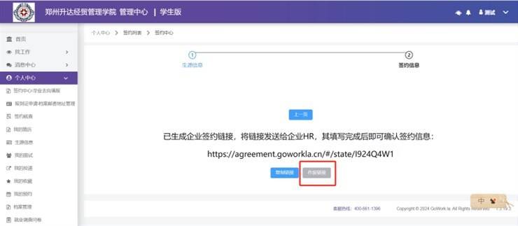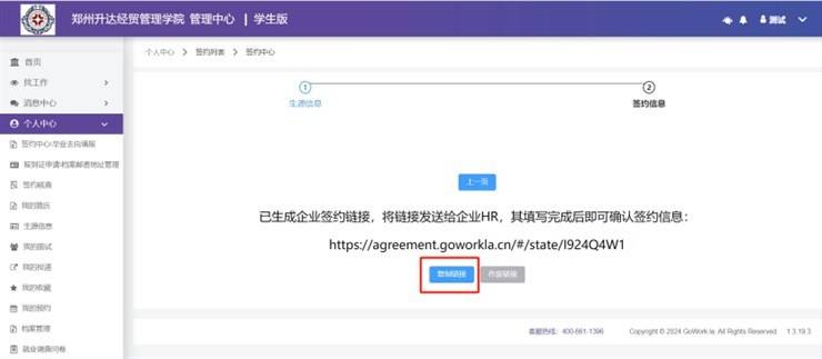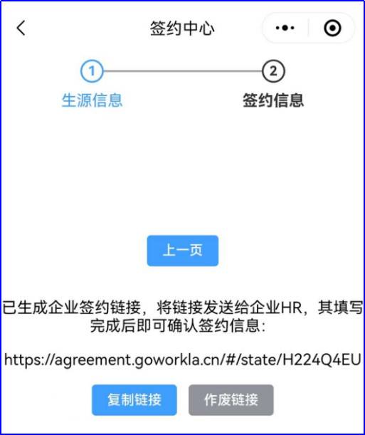 1.点击【复制链接】并将链接给签约企业进一步完善如需重新发起签约,可点击【作废链接】取消线上签约