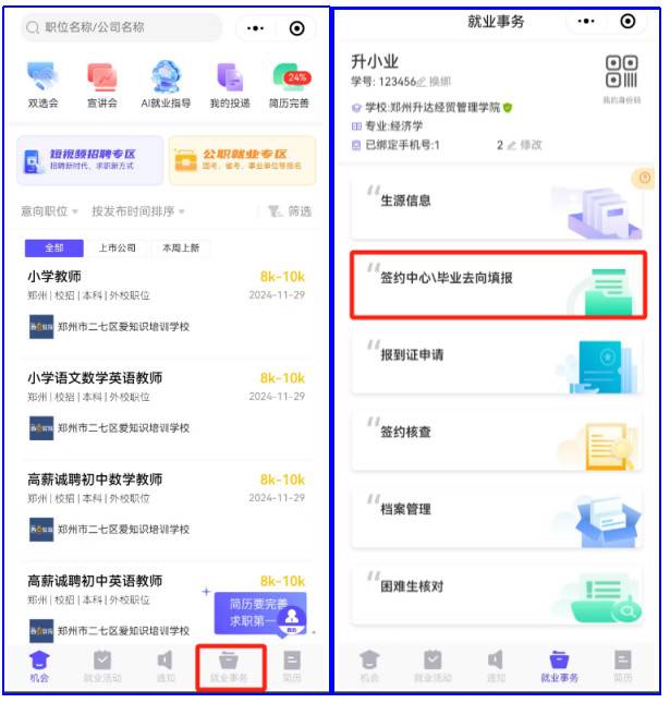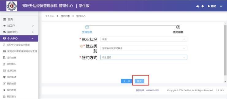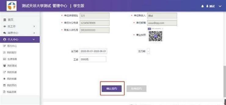 2.用人单位反馈信息后学生确认无误后【确认签约】提交审核。