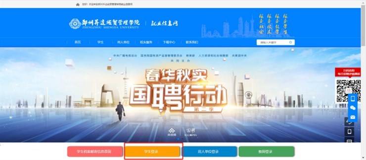 1.毕业生登录就业信息网首页,点击【学生登录】,输入学号、密码进行登录。